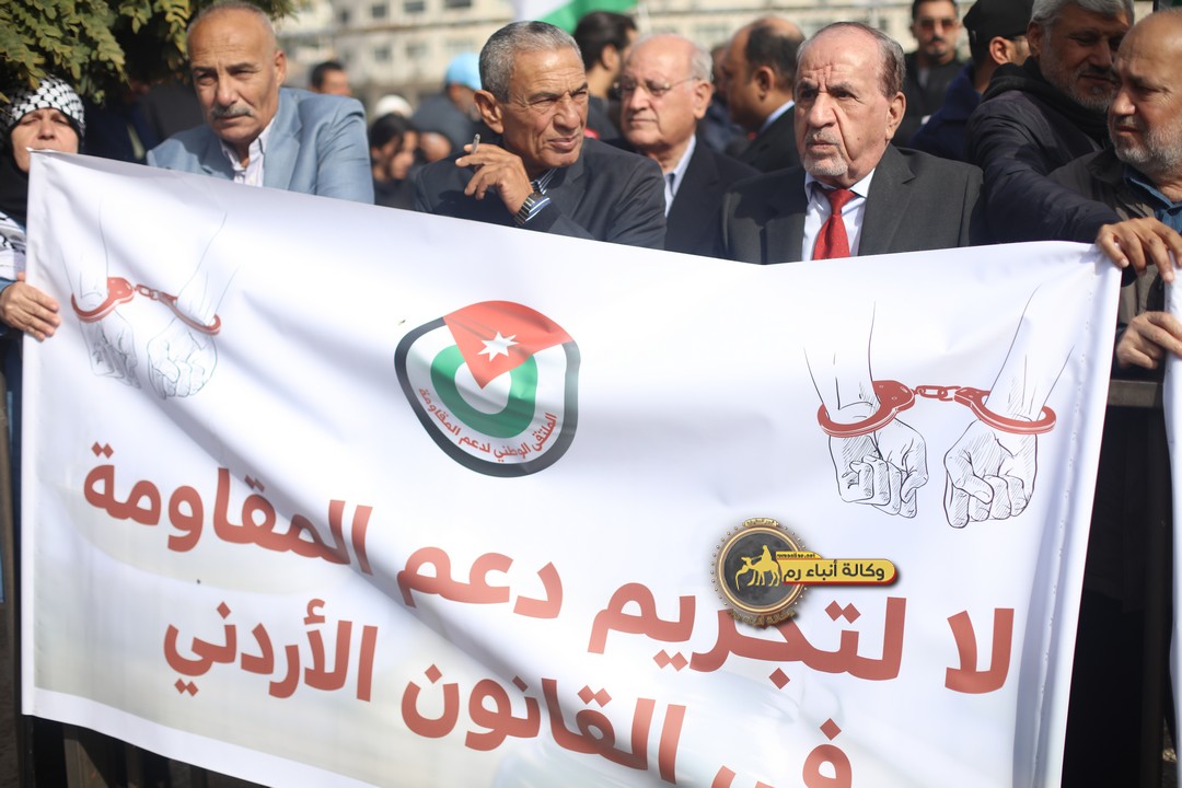ويحمل الإعتصام شعارات عدة وهي " المقاومة خيارنا، ألغوا معاهدة وادي عربة، ألغو اتفاقيات الغاز، عدلوا قانون الإرهاب، المقاومة شرف وواجب وليست إرهابًا ".
